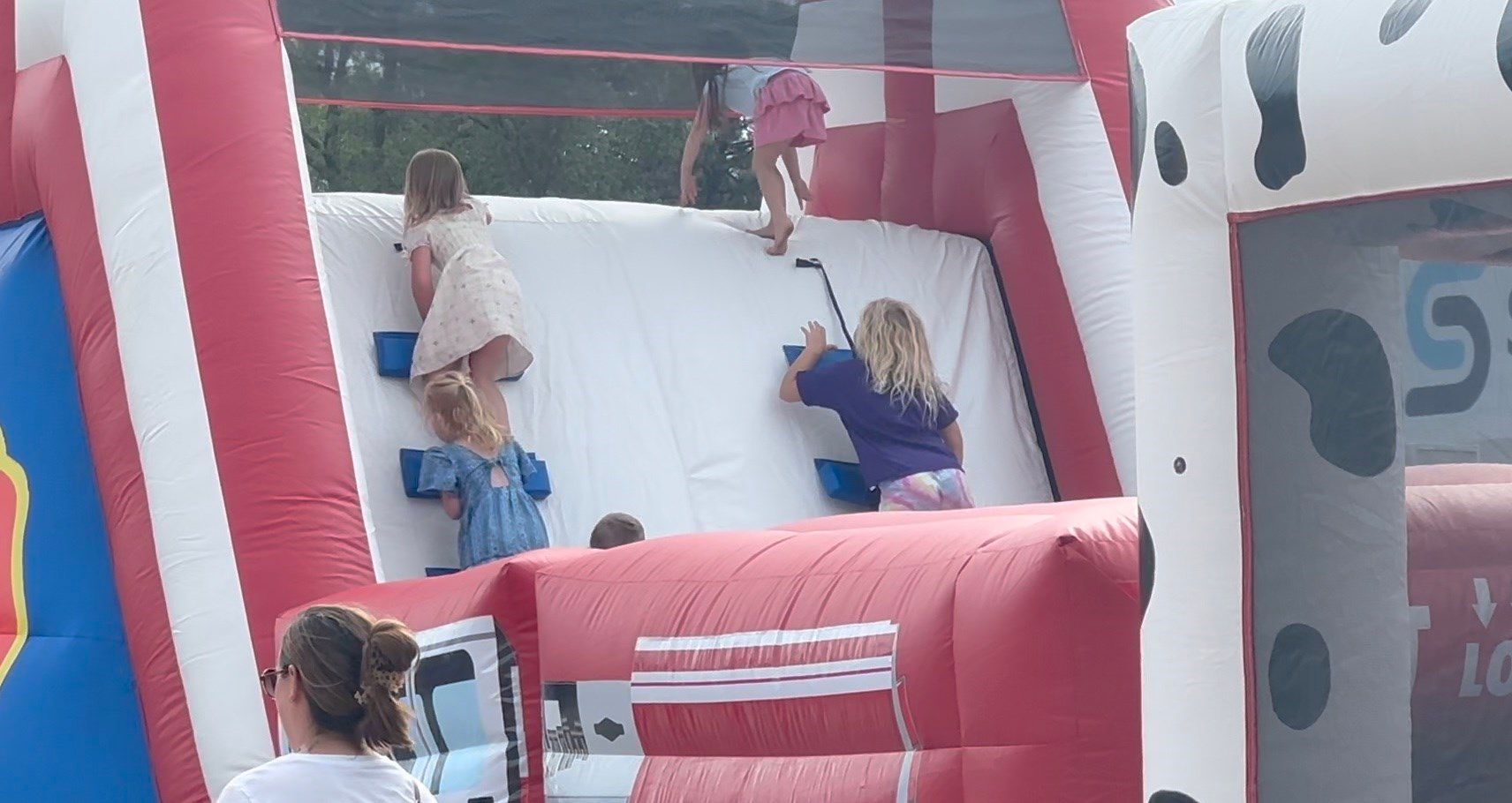 Hundreds of kids turned out to wear fire gear, handle a charged fire hose, navigate a smoke house and stay low while traversing the inflatable obstacle course that was purchased with funds from the Vincent and Marie Kreifels Family Foundation.