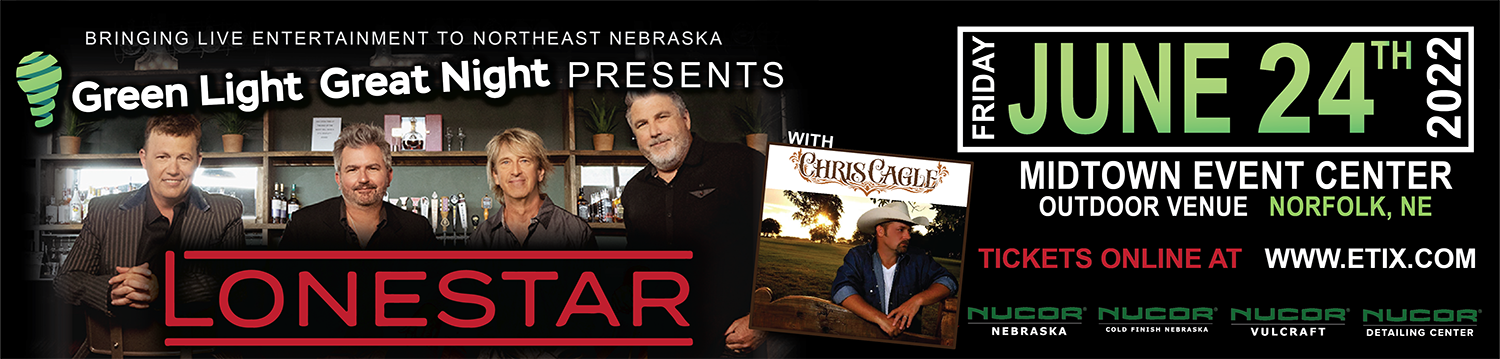 Featuring LONESTAR, with special guest Chris Cagle on Friday 6.24.22, at the outdoor venue at Midtown Event Center in Norfolk, NE.
