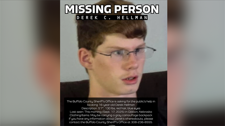 16-year-old Derek Hellman was last seen Wednesday morning in Gibbon.