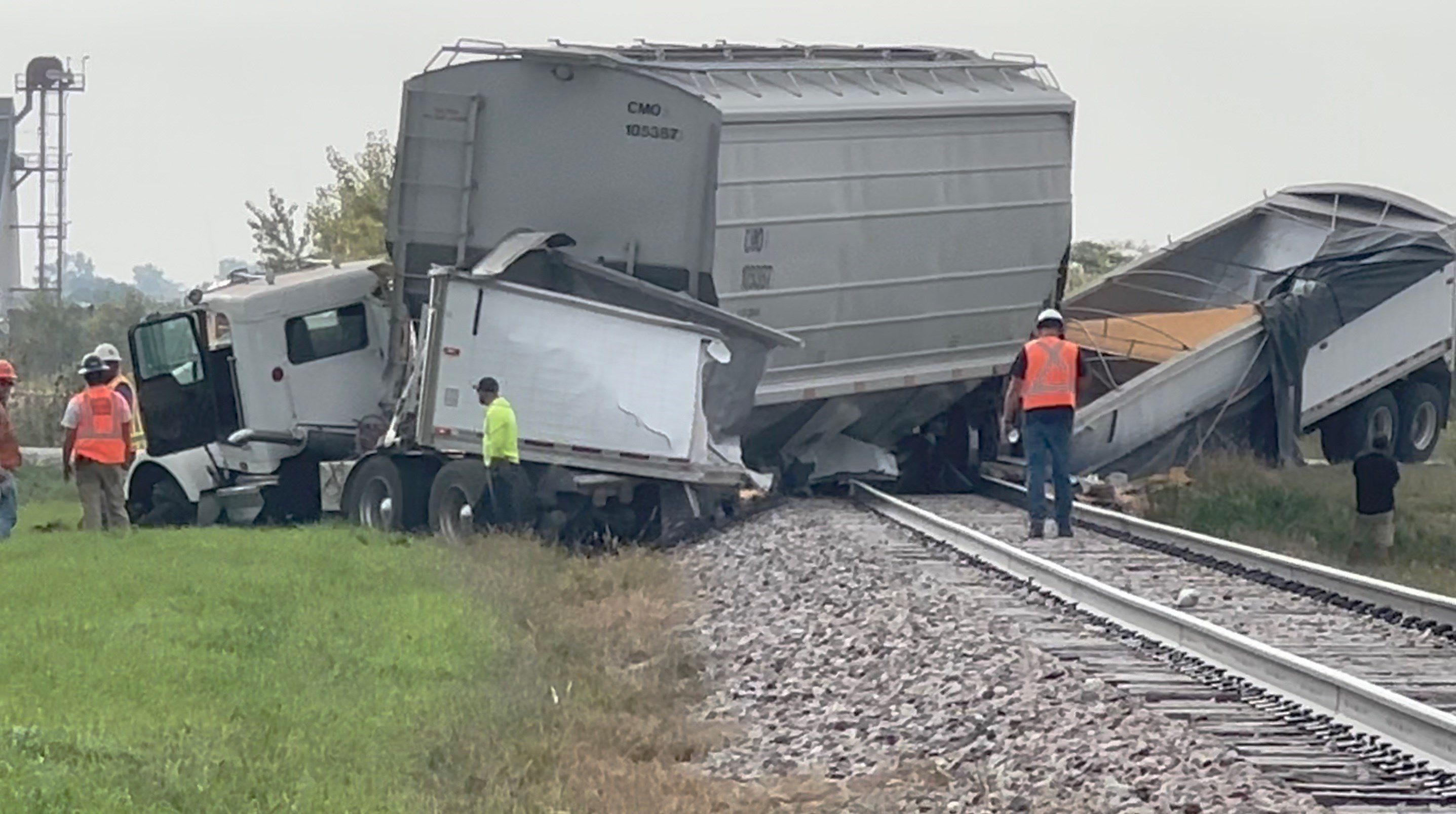 An Otoe County Sheriff’s Office deputy said the train was backing up as the truck was crossing the tracks east of Highway 50 on K road. The railroad boxcar was derailed as the train pushed the truck about 100 feet and tore the semi-trailer in two. The locally-owned trailer was loaded with corn and headed to the cooperative.