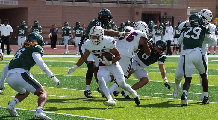 Aidan Thompson threw four passing touchdowns on just 16 pass attempts, finding Tommy Thomas for scores three times, while CSC's defense sacked Adams State six times for 39 negative yards, permitted Adams State to succeed just twice on 16 third down attempts and forced the Grizzlies to punt 10 times.
