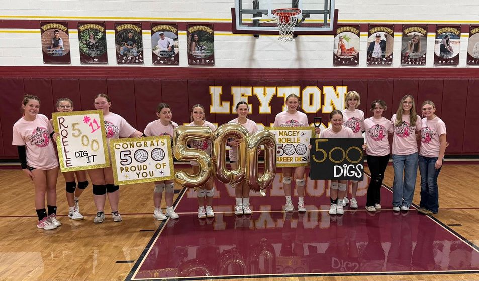 DALTON – Senior Macie Roelle recorded her 500th career dig Tuesday night, leading Leyton in a home triangular against Minatare and Creek Valley. The Warriors finished 1-1 on the evening, sweeping Creek Valley 2-0 and falling to Minatare in three sets.